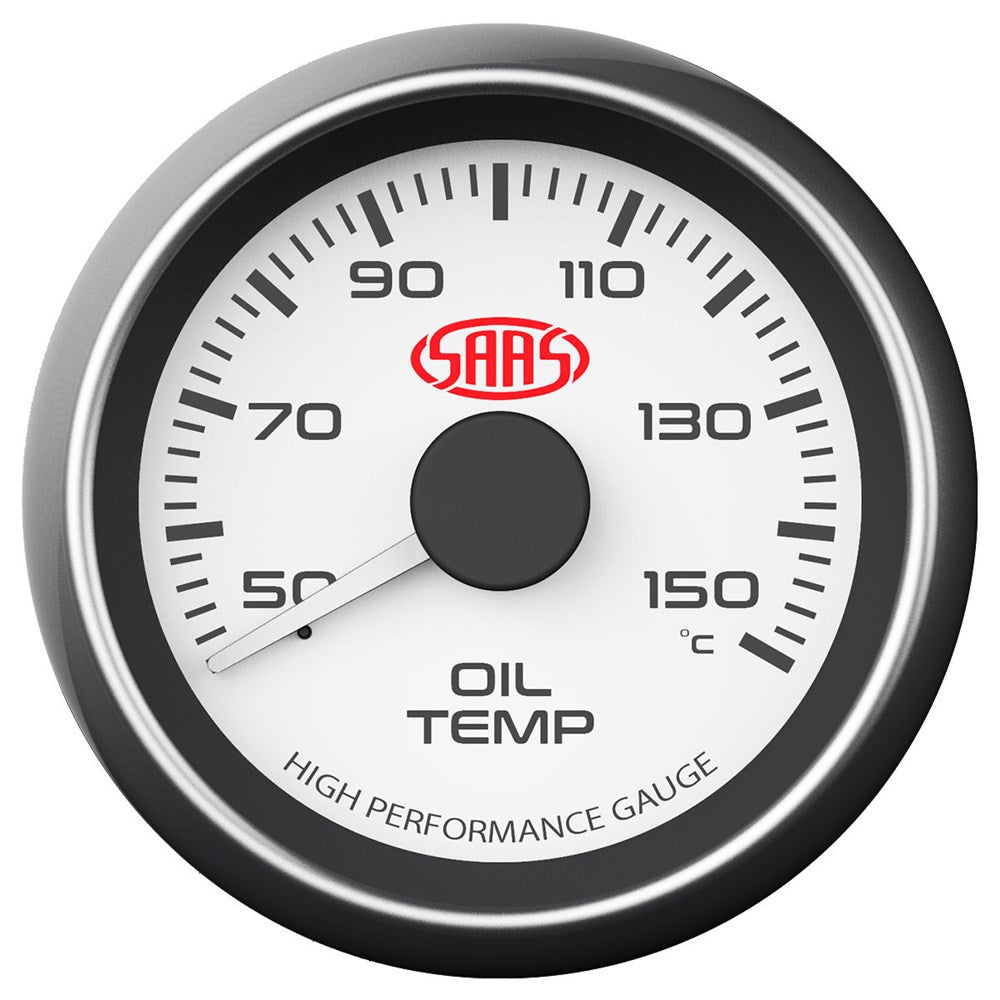 SAAS 52mm White Muscle Series Oil Temperature Gauge (50-150C) - SG-OT52W