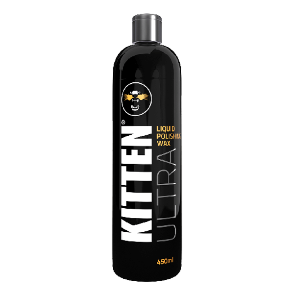 Black bottle of Kitten Ultra Wash 'N' Wax on a white background