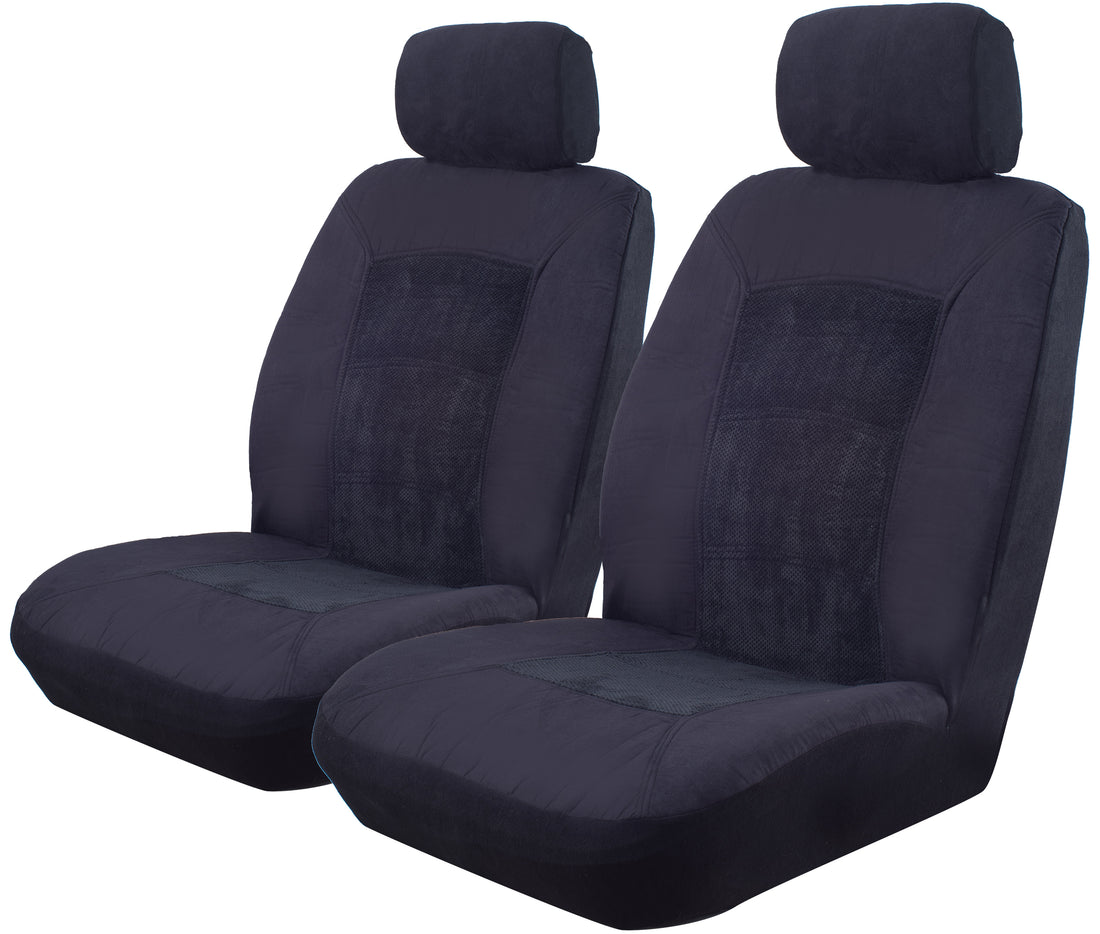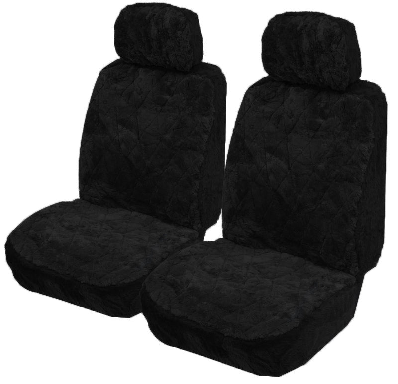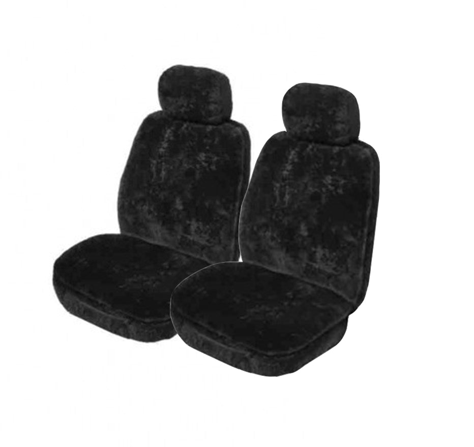 MyCar 20mm Thick Sheepskin Front Seat Covers Size 30 - Black Soft Fleece - SSOFA3004 (Bulky Item - Freight Applies)