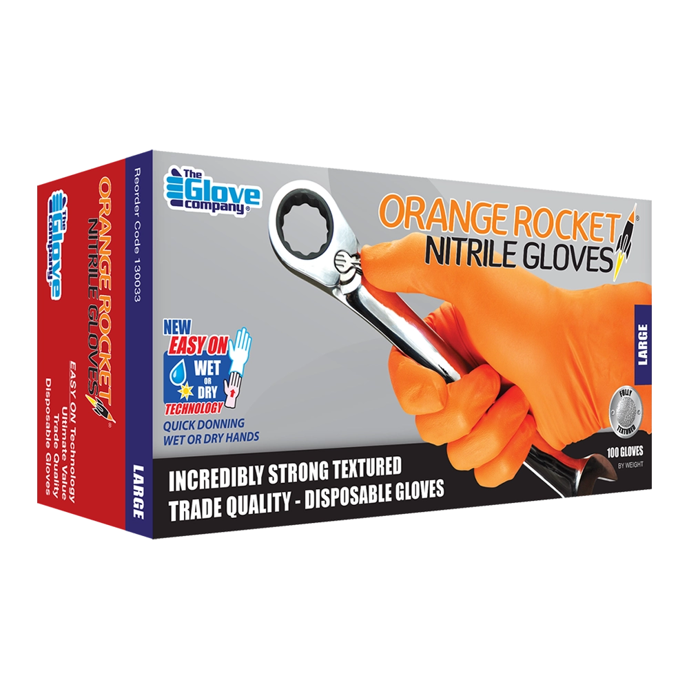TGC Orange Rocket Nitrile Disposable Glove 100 Pack Size L - 130033