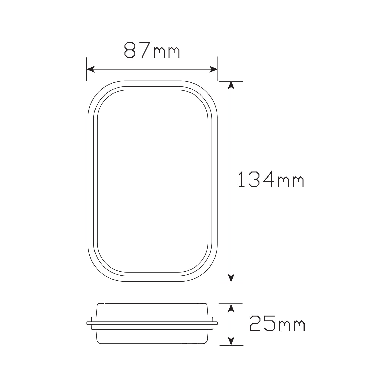 Rectangle Stop/Tail Lamp with Red Lens and Chrome Inner Refletcor, 40cm Cable with Spade Terminals, Overall Size 134mm x 86mm x 14mm, 12/24 Volt, ADR approved, Recessed Mounting, Requires P/N 59401 Grommet, IP67, 5 Year Warranty, Single Blister Pack