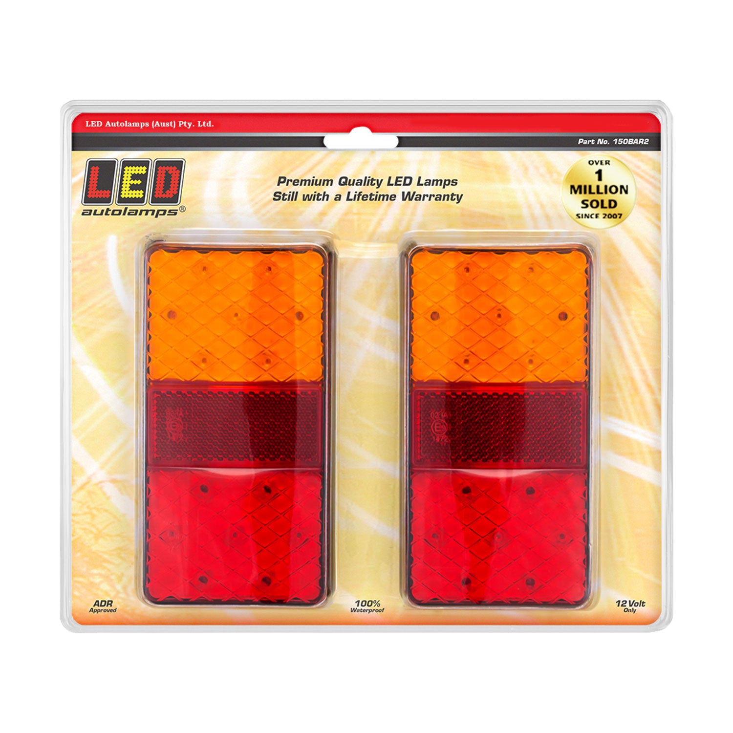 Premium Trailer Lamp, Stop/Tail/Indicator/Reflex reflector, Small Rectangular Shape,150mm x 80mm x 24mm , 12 Volt Only, Fully Resin Sealed, ADR/ECE Approved, Bolt Surface Mount, 40cm cable with plug, Harness System Compatible, IP67, Lifetime Warranty, Twin Blister Pack,