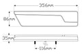 LED rear combination lamp, black design with diffused tail, sequential indicator, stop, reverse and an inbuilt reflector (stop/tail/indicator/reverse/reflector), 356mm x 86mm x 35mm, 12/24 volt, ECE approved, bolt surface mount, stainless steel fittings, 30cm cable, IP67 ingress protection rating, 5 year warranty, sold as a set (left and right) in retail packaging (blister pack)
