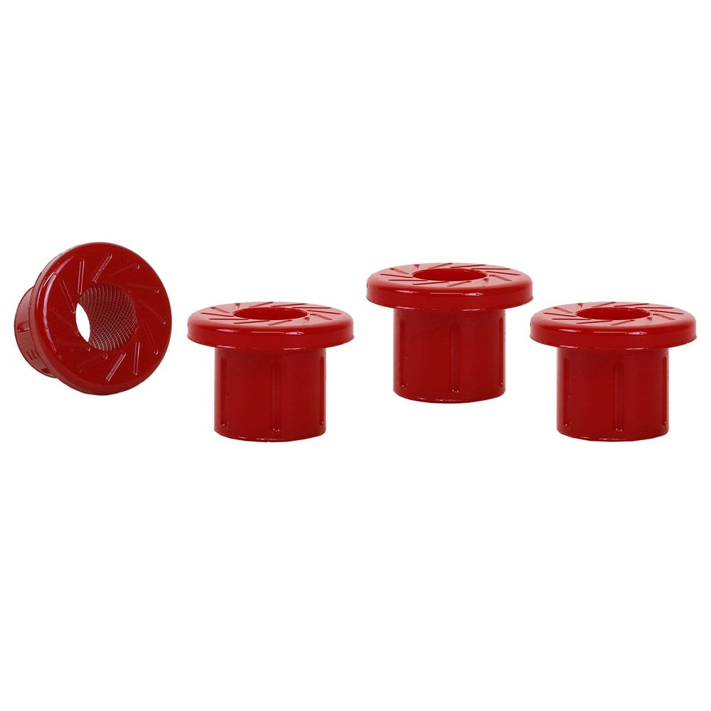 A critical service item for any leaf sprung vehicle. High kilometres and heavy load carrying causes excessive wear on rubber bushings. Nolathane's signature red bushings are made tough and offer outstanding abrasion resistance, high load bearing capability (4WD’s, utes and towing), flexibility, increased tensile strength and chemical resistance to oil, grease, ozone and weathering.