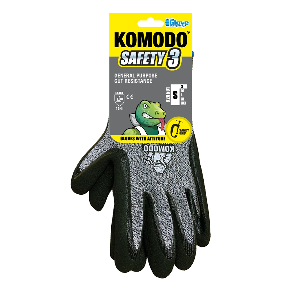 Komodo Cut 3 Safety Gloves are heavy duty and feature a thick double-dipped chemically resistant nitrile coating for maximum Komodo strength.
