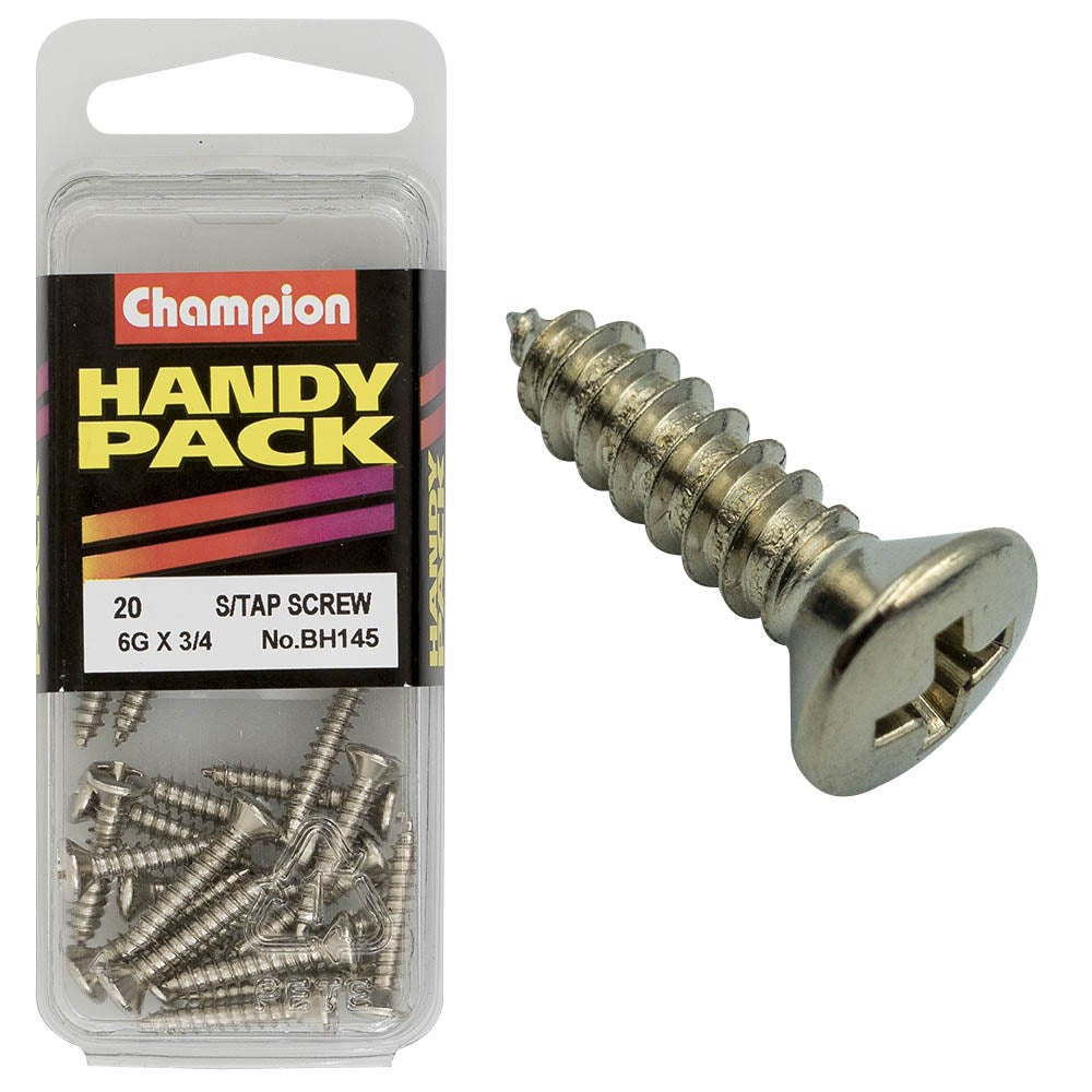 Champion Pack of 20 6G x 19mm Philips Raised Head, Nickel Plated Self Tapping Screws - BH145