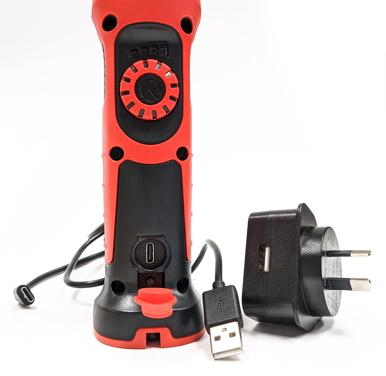 Charges via USB-C via any USB source or the included wall adapter